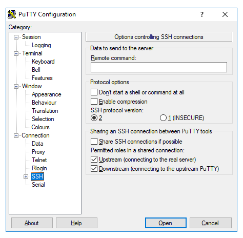 Next, click on SSH in the left sidebar (under Connection). Make sure 2 is selected for SSH protocol version.