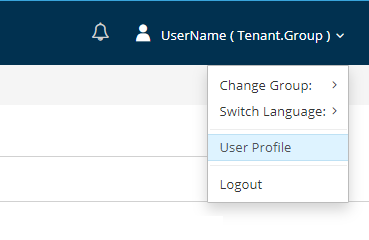 Notifications- system messages;User name- information on the user name;Change Group- switch to another user group;Switch Language- change interface language;User Profile- personal profile of the current user;Logout- log out of the system.