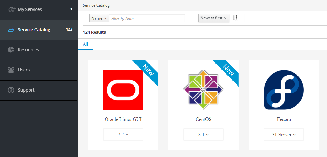 The Service Catalog tab consists of server images that can be deployed and used as full-worth services. After selecting the service, you will be asked to fill in the order form with the required characteristics.