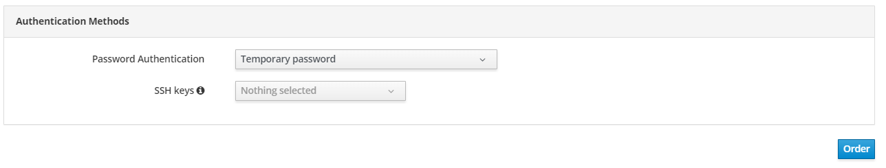 When selecting New SSH Key, there is an option to add keys directly from the ordering dialog. In this case, the key will be used when ordering the service but not saved in the user profile.