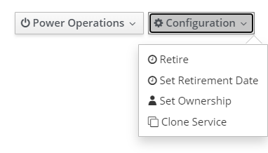 To set up a scheduled retirement of the service, go to its page, click the Configuration button in the upper right corner, and then select Set Retirement Date in the drop-down list.