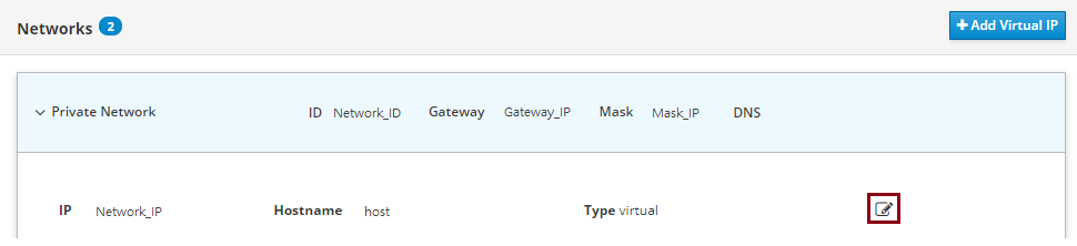 To do this, go to the Networks tab on the service page and click the button highlighted on the screenshot:
