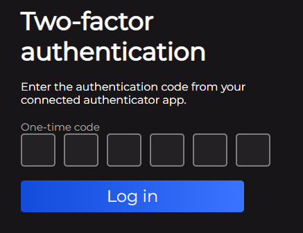Username or emailandPassword. - Enter the one-time password (OTP) generated by your authenticator app.